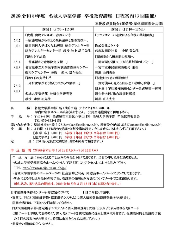 2026(R8)卒後教育講座のご案内